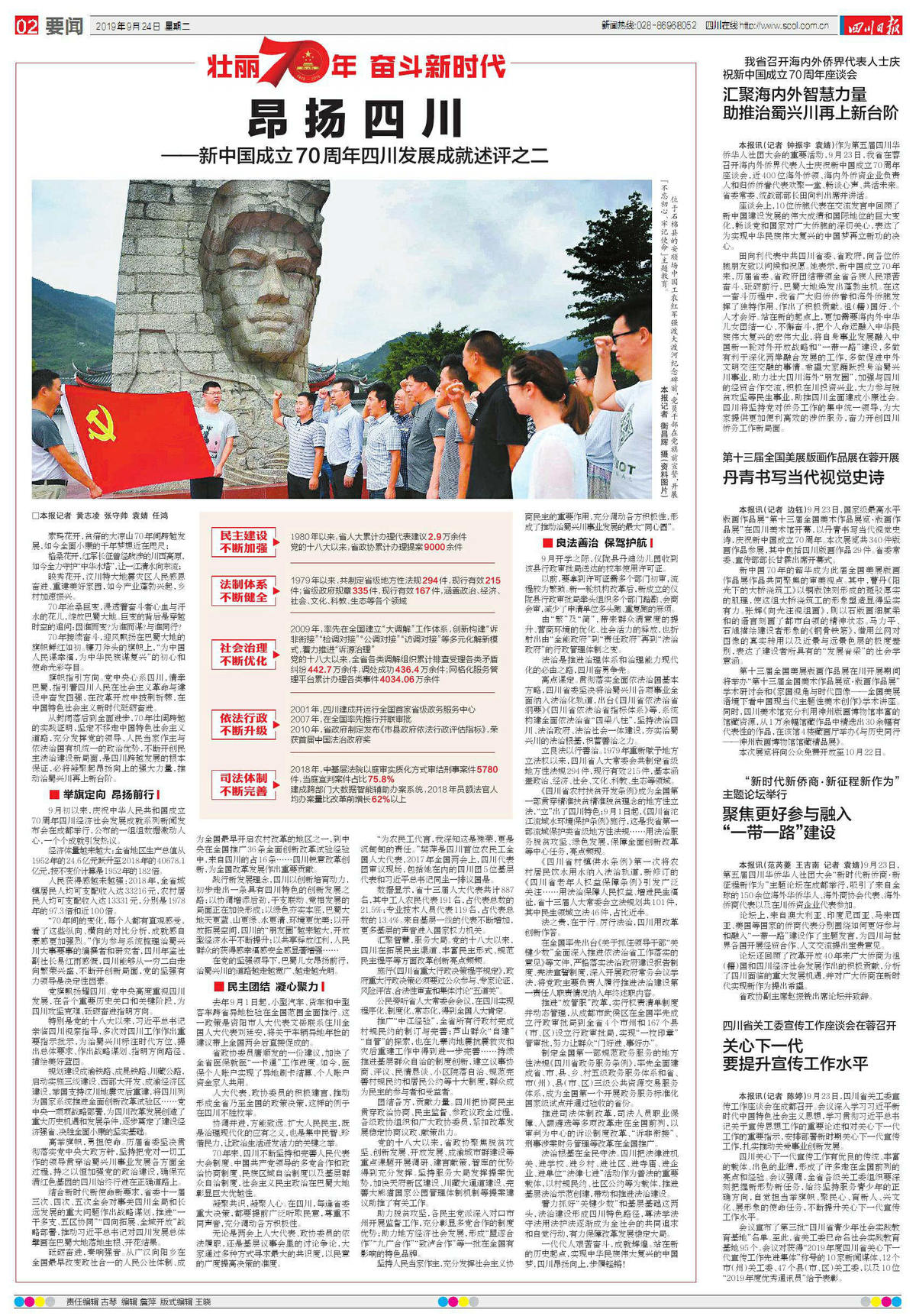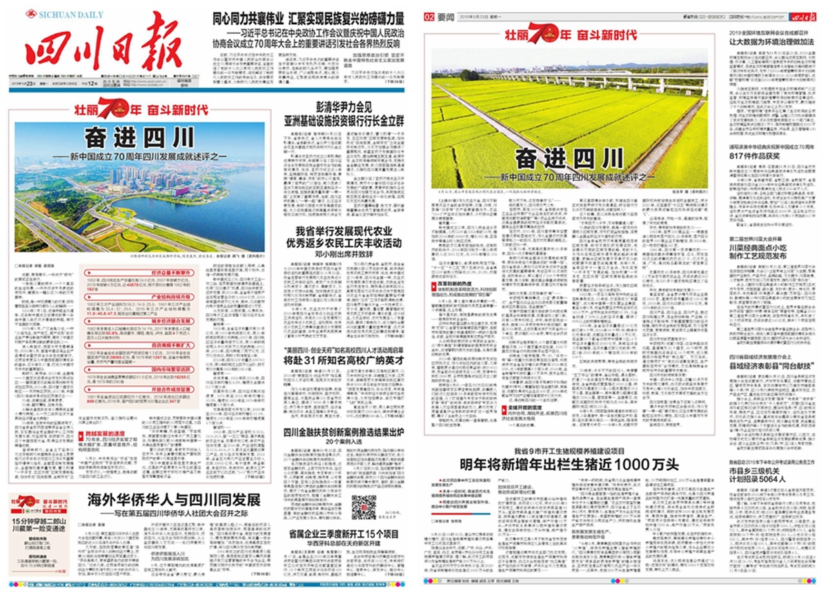 9月23日起,四川日报陆续推出“新中国成立70周年四川发展成就述评”6篇深度报道,从经济社会发展的六大维度,解读四川70年来波澜壮阔的历程,展现四川人民的伟大成就和经验智慧。