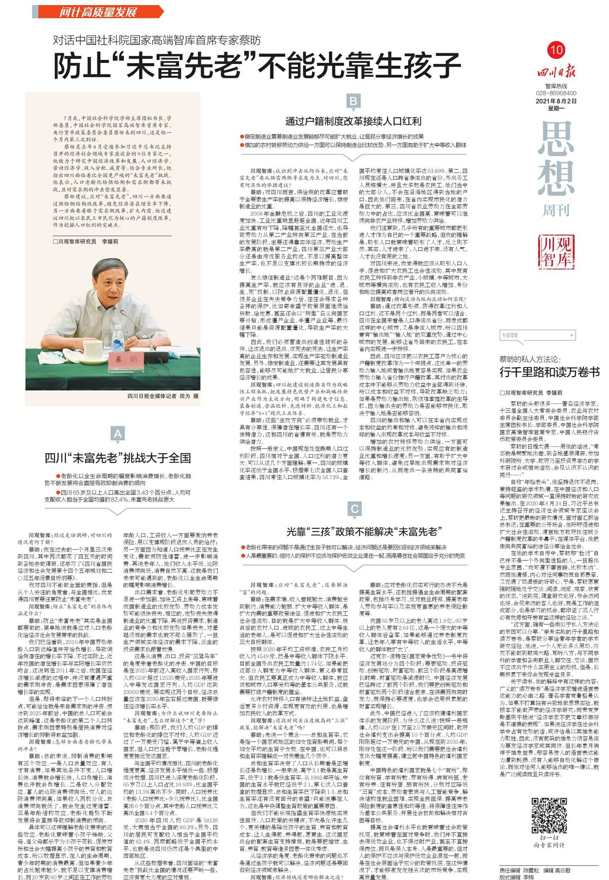 对话中国社科院国家高端智库首席专家蔡昉:防止“未富先老”不能光靠生孩子