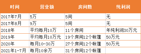 2019年和2020年,肖兴蓉家接连扩大民宿规模,房间从5间发展到31间,营业额从每月5万元翻到了十几万元,旺季每个月的营业额可达20-30万元。仅2019年,民宿纯利润就达到了50万元。