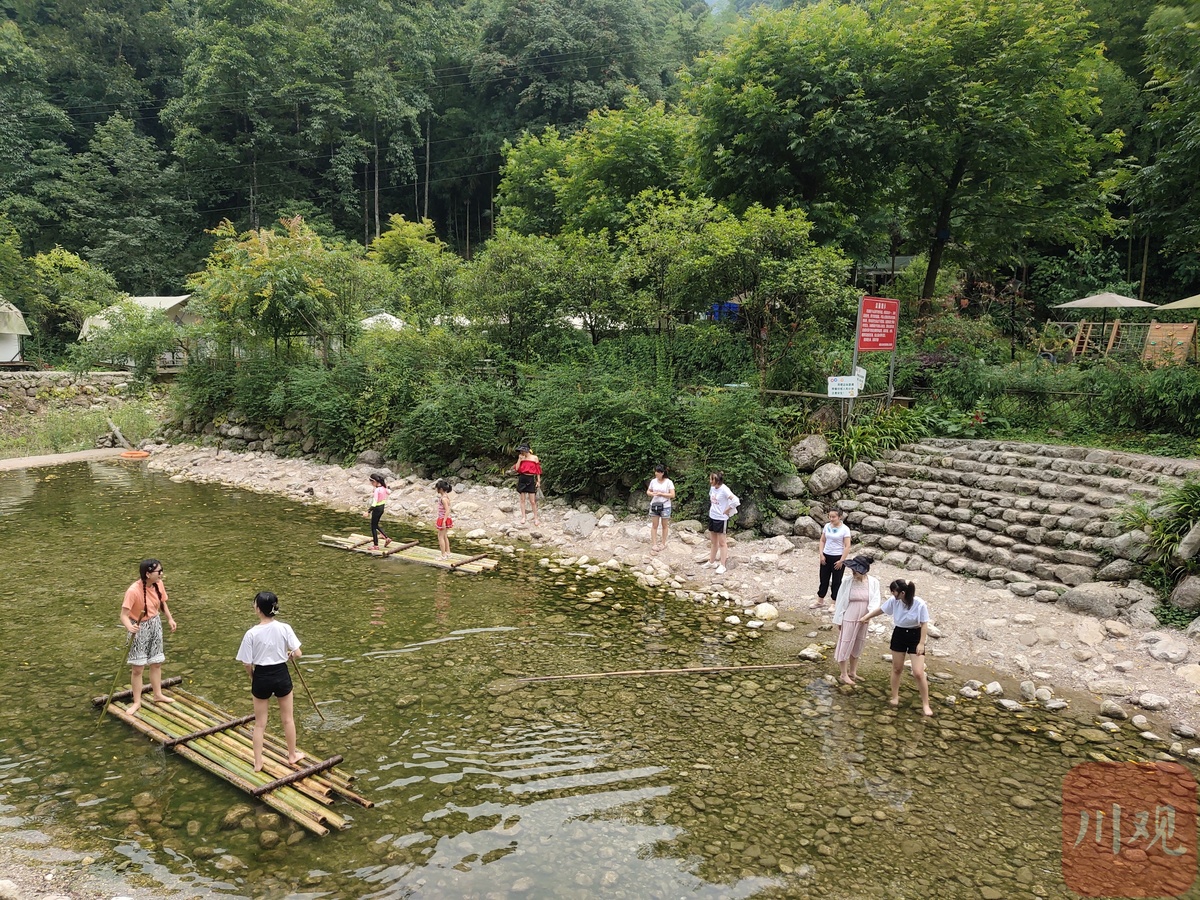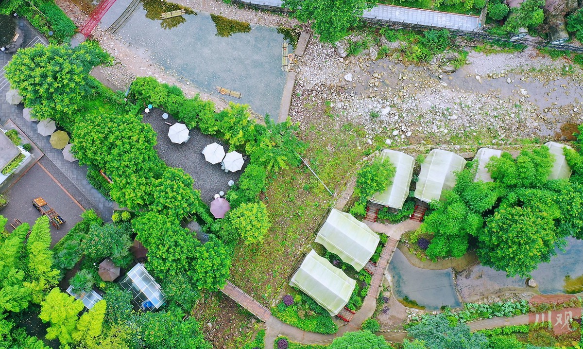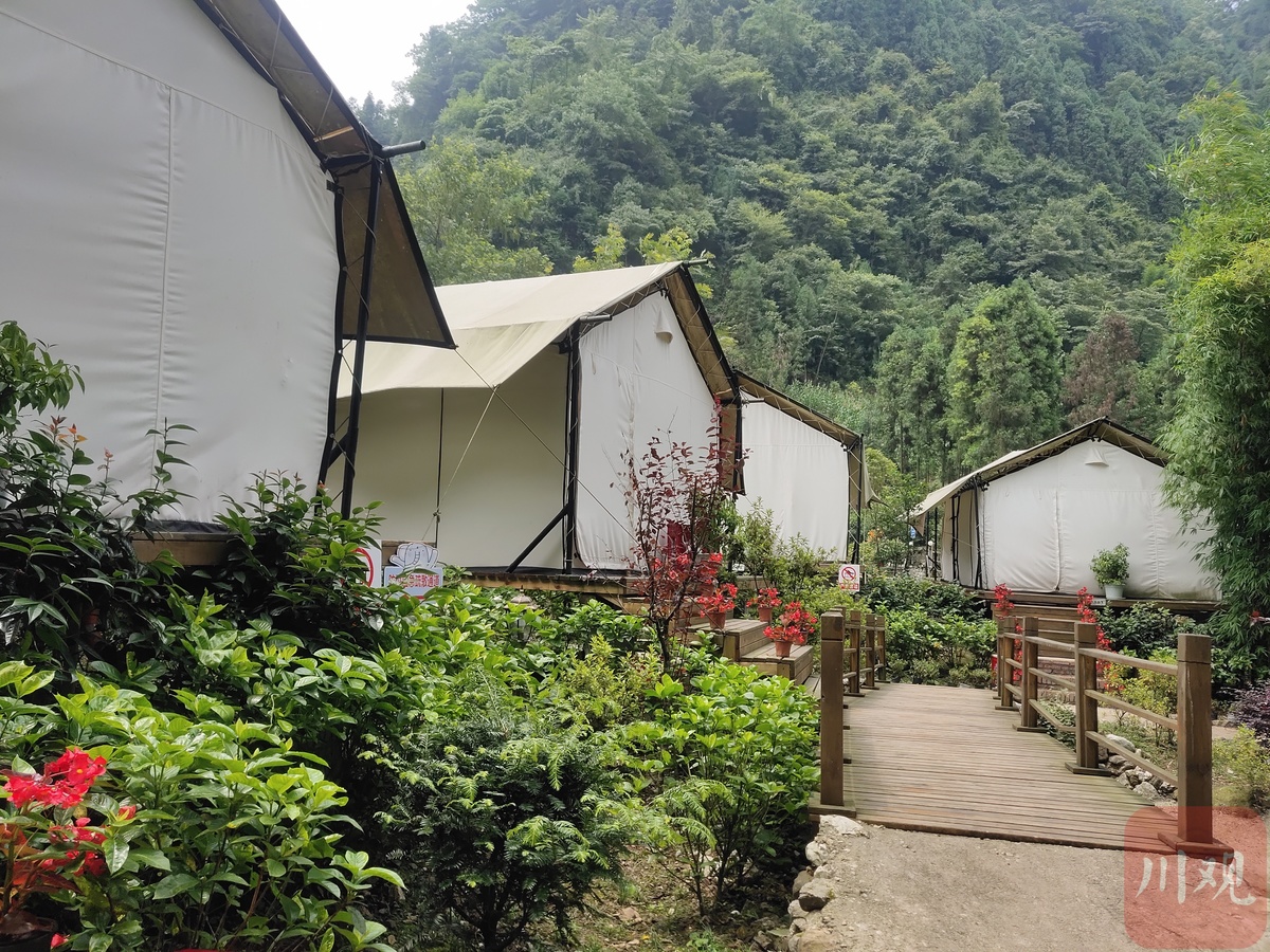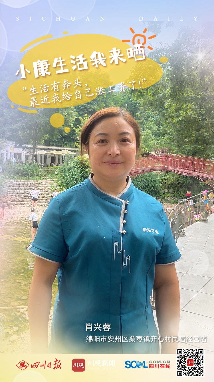肖兴蓉是绵阳市安州区桑枣镇齐心村翎谷濯缨民宿的管家,也是民宿投资人之一。2017年,翎谷濯缨作为当地第一家民宿正式开业,随后两年时间里,当地村民也纷纷搞起了民宿、餐饮,目前已经有民宿30家。现在这里已成了一块避暑胜地,每年夏日,除绵阳本地人,还有不少成都、德阳等地的游客前来打卡。
