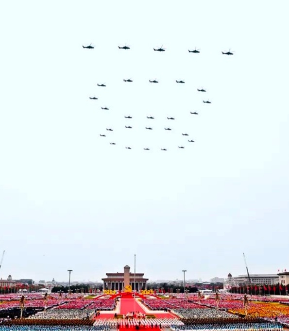 这天清晨,15架歼-20战机分3个梯队,呼啸飞过天安门。29架新型武装直升机组成的“100”字样,引起人们忘情的欢呼、无限的畅想。