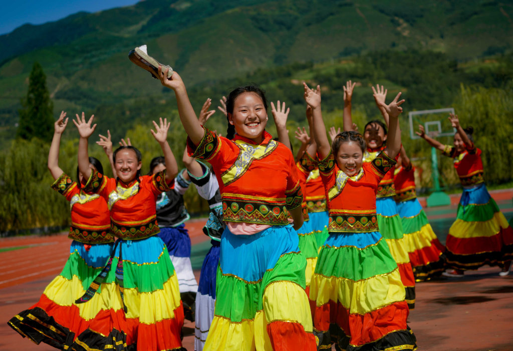 8月16日,越西县控辍保学文艺巡演在中所镇举行。巡演队员都是劝返复学的学生。 向宇 摄(视觉四川)