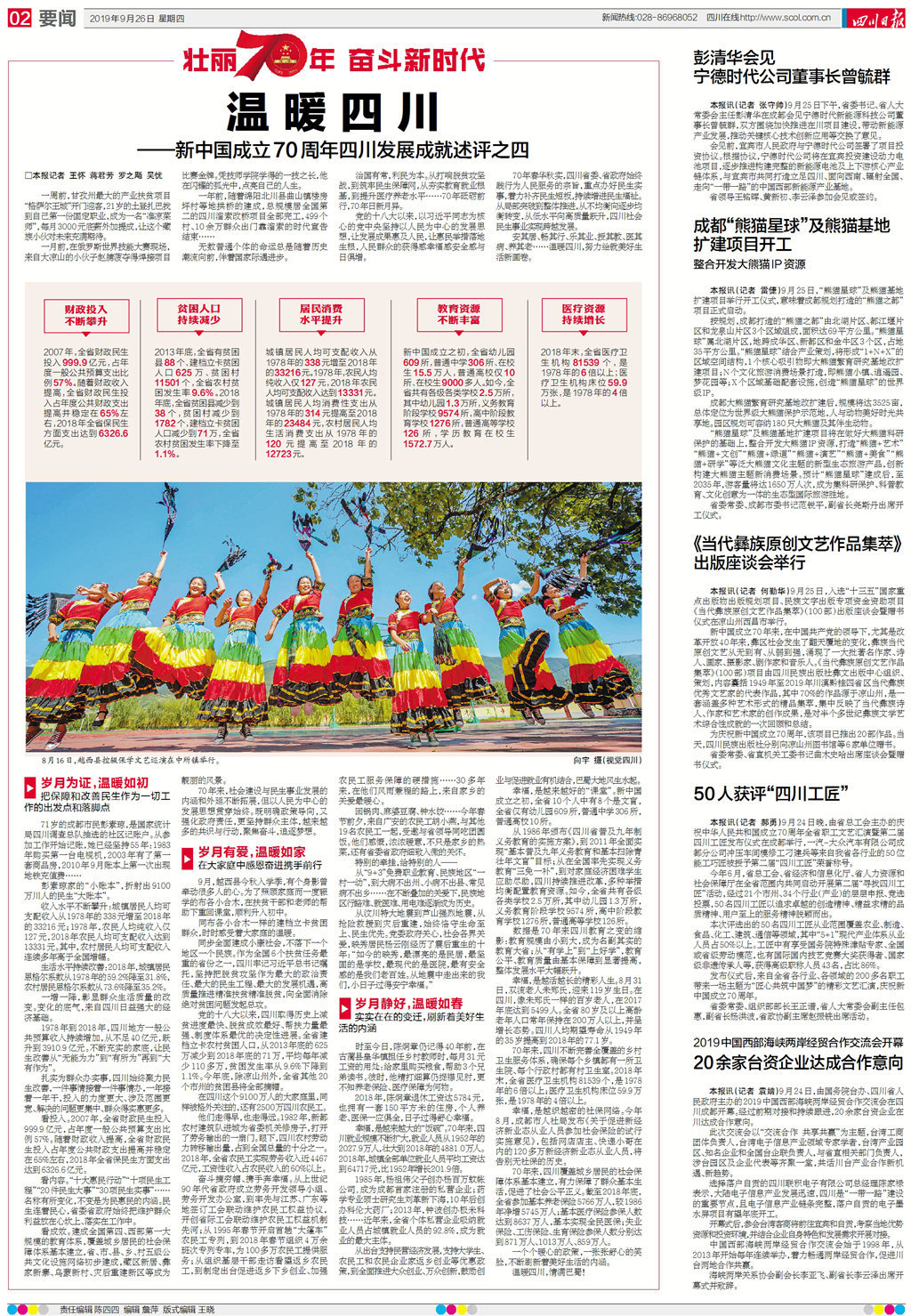 9月23日起,四川日报陆续推出6篇深度报道,从经济社会发展的六大维度,解读四川70年来的跨越发展,展现四川人民的伟大成就和经验智慧。