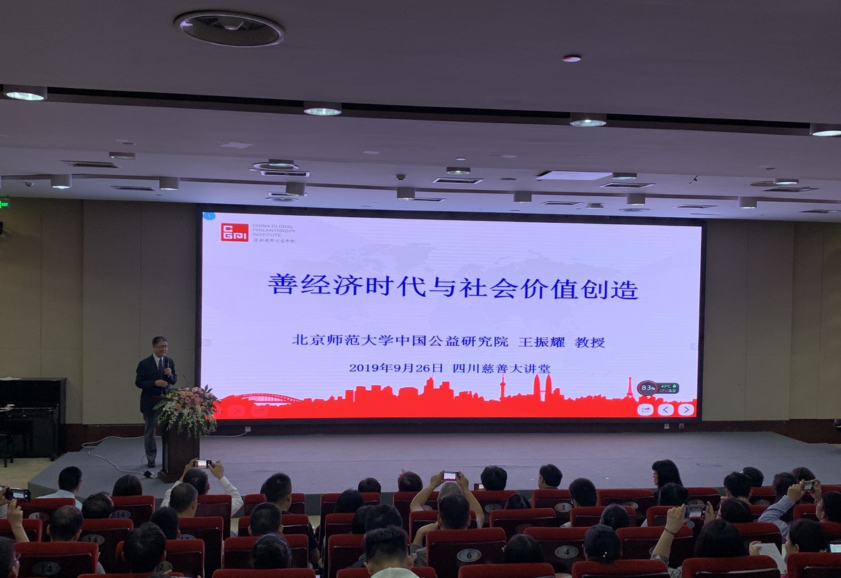 “我们来到了一个时代,叫做善经济时代,社会价值逐渐引领经济价值,慈善正从边缘走向中心,担负起真善美和经济与社会建设的使命……”9月26日,在“四川慈善大讲堂”项目启动仪式暨四川慈善第一课上,北京师范大学中国公益研究院院长王振耀为大家分享了善经济时代与社会价值创造。