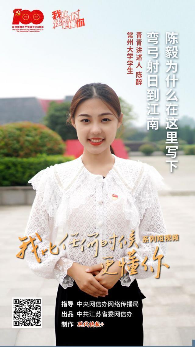 8 月 3 日,"我比任何时候更懂你"系列短视频第 10 集《为何陈毅在这里写下"弯弓射日到江南"?》上线,本集青青讲述人是常州大学学生陈醉。