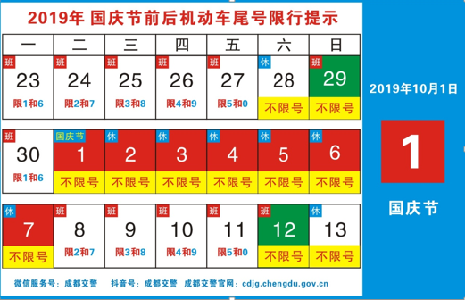 9月28日(周六)及29日(周日)不限行,9月30日(周一)尾号限1和6;10月1日至7日,车辆不限行。