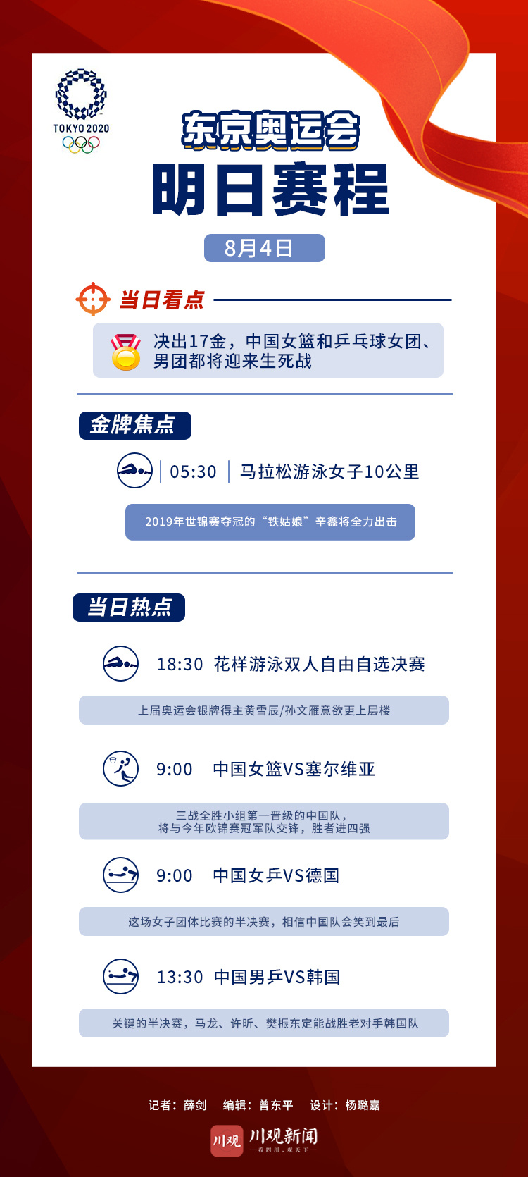 今晚,记者继续预测8月4日中国军团的表现,为大家观战奥运助兴。有兴趣试试自己竞猜水平的朋友,可以点击标题参与川观新闻主办的竞猜活动:《奥运竞猜赢大奖 23万人次参与的大项目赶紧上车》
