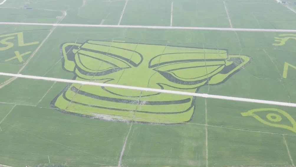“这可能是史上最大的面具。”近日,“三星堆稻田画”话题登上微博热搜,引发网友热议。在广汉市金鱼镇,约50亩的稻田里呈现出一个巨大的三星堆“青铜面具”,图形展现出青铜面具为人熟知的“神秘微笑”。