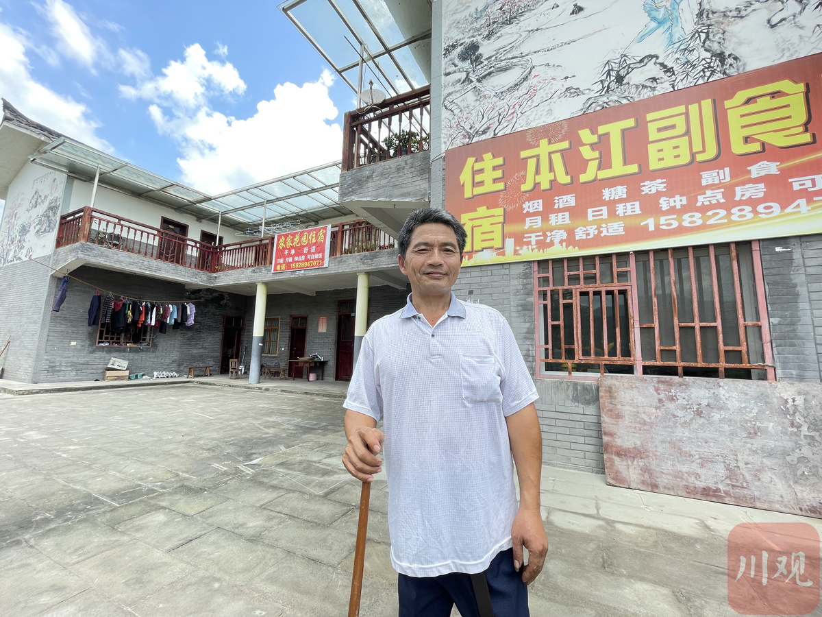 新房总共14间屋子,刘家只有5口人,根本住不完。在帮扶干部的建议下,刘本江把二楼的7间房改成了民宿。2018年,民宿开张。随着彩林园的扩大,园区办起了“彩林节”和“大酥肉节”,前来住宿的游客越来越多。依托小卖部和民宿的收入,加上弟弟、弟妹务工赚的钱,老刘家一年收入有十来万元。