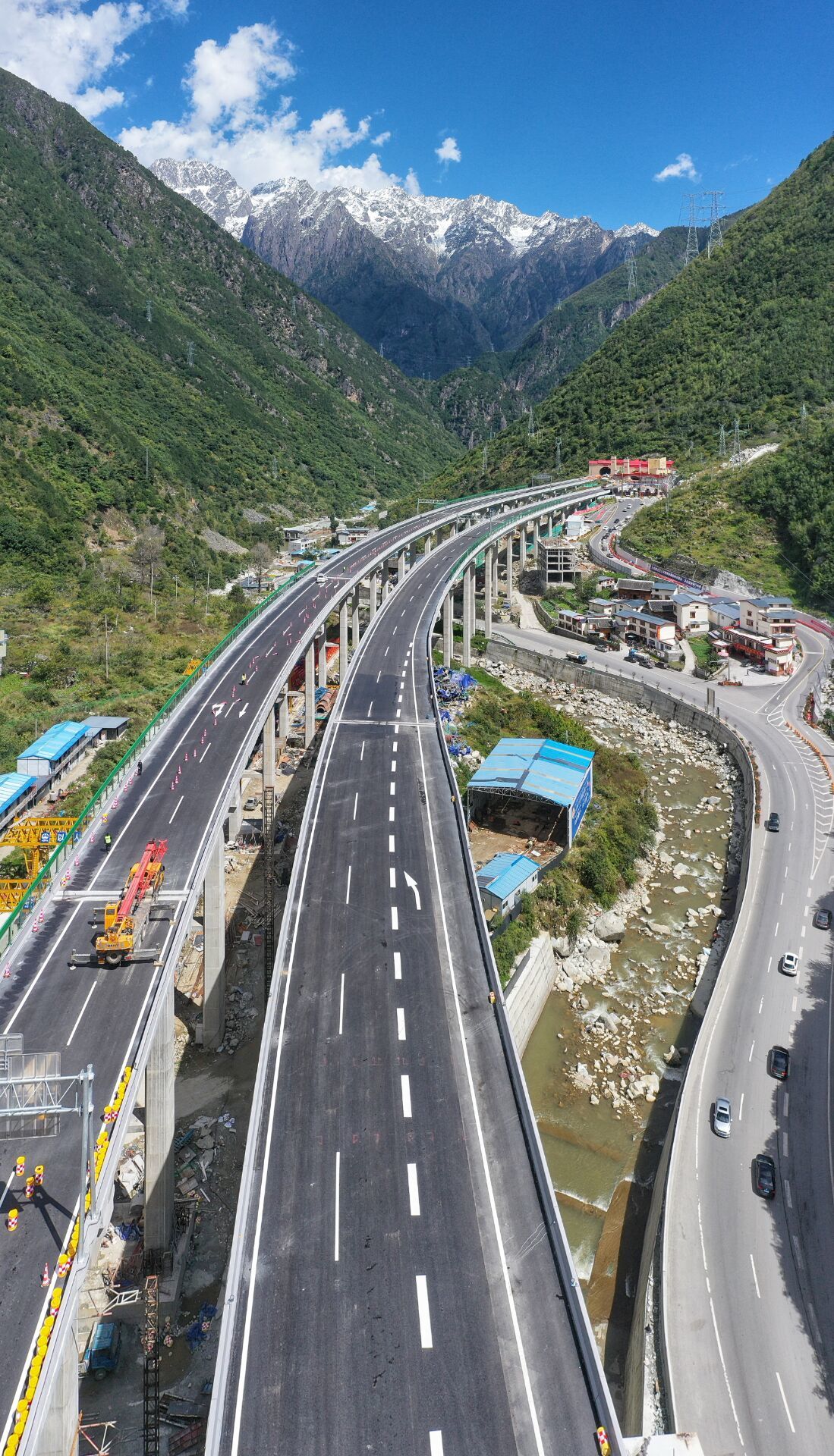 雅康高速公路康定连接线是甘孜州康定市与雅康高速公路、雅叶高速公路康定过境段连接的重要节点工程,主要由升航特大桥、升航互通、康定收费广场及进城加宽段组成,共4.8公里。进城加宽段长3公里,路基宽度20米,采用双向4车道设计,设计时速40公里/小时。升航特大桥与升航互通为钢箱-混凝土桥面板叠合梁上部结构,由主线升航特大桥及6座匝道桥组成。