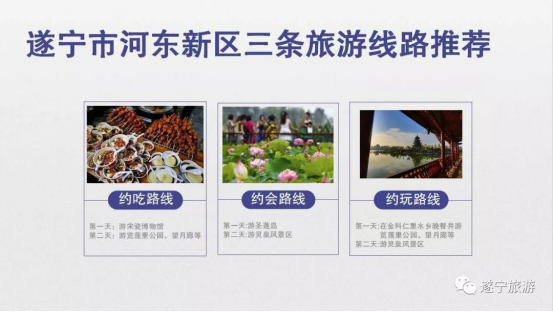 此次河东新区文化旅游节以 “行走遂宁·约在河东”为主题,从9月27日起至10月21日,为期25天,将集中展现河东新区登灵泉、逛古镇、游湿地、赏花海的精品旅游线路,同时对河东特色美景、美食进行推荐,如莲里送香亭、保利花卉园、仁里码头等,让游客感受河东新区宜居、休闲、养心的城市魅力。