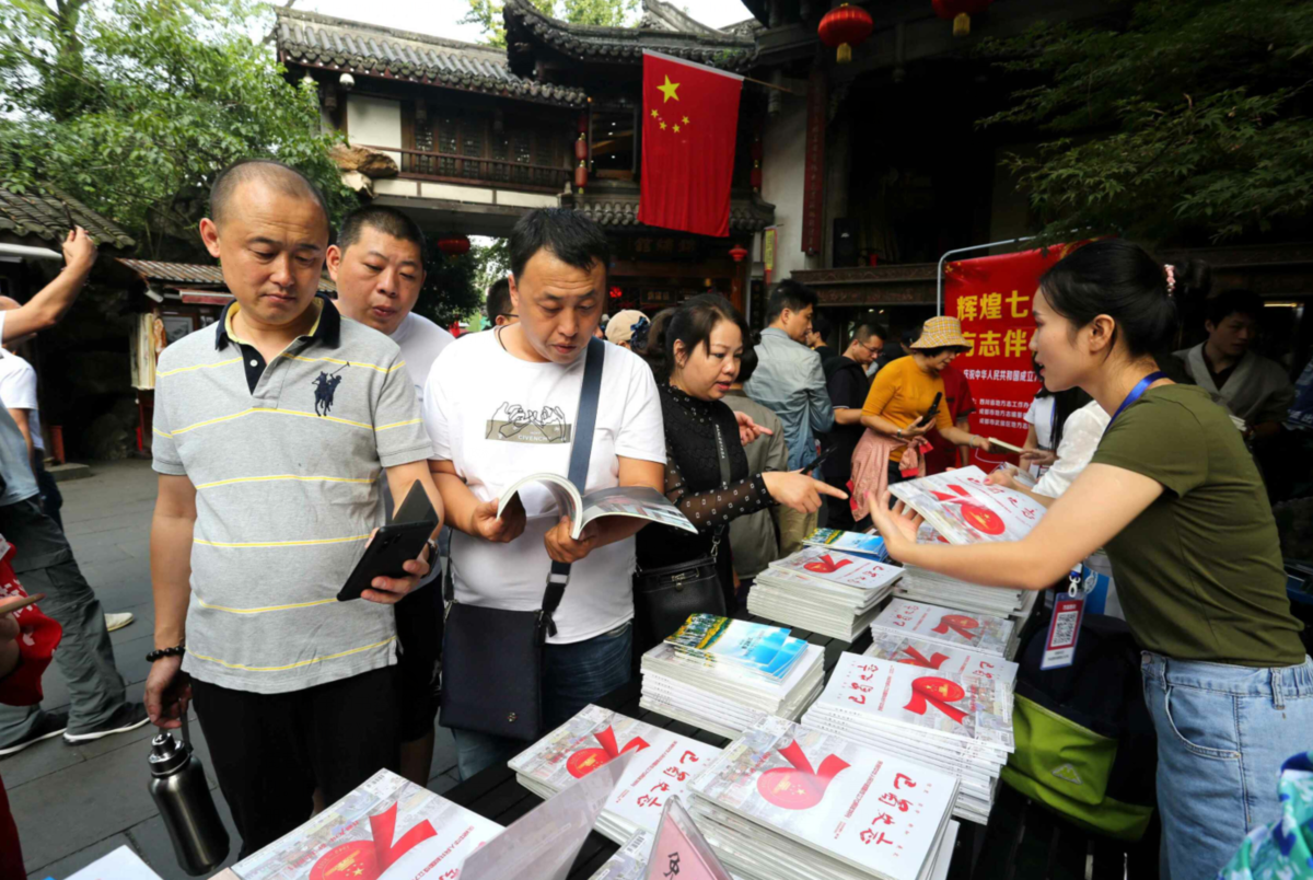 这些书刊,既展示了新中国70年发展的伟大成就,又独具四川文化特色,受到广大群众热烈欢迎和广泛好评,吸引约5万余人在展点翻阅、传看、互动,让大家在愉悦享受文化大餐的同时,进一步增强热爱党、热爱祖国、热爱家乡的家国情怀。