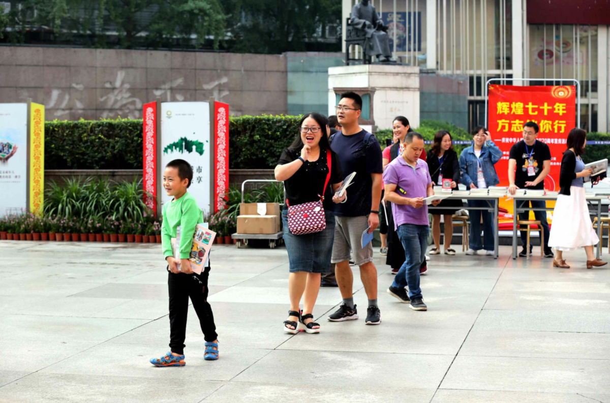 为隆重庆祝中华人民共和国成立70周年,广泛宣传弘扬中华优秀传统文化,让70年来的四川故事走近寻常百姓,让70年来的四川声音唱响成都街巷,9月28日,省地方志工作办公室联合成都市、锦江区、青羊区、武侯区地方志编纂委员会办公室举办的“辉煌七十年 方志伴你行”——庆祝中华人民共和国成立70周年街头宣传活动,向高校学生、市民、游客等赠送承载丰富巴蜀文化和地情信息的书刊、地方志工作宣传手册3万余套,传播巴蜀大地悠久的灿烂文化,宣传地方志工作在传承弘扬中华优秀传统文化中的重要作用,宣传新中国成立70年来四川取得的辉煌成就。