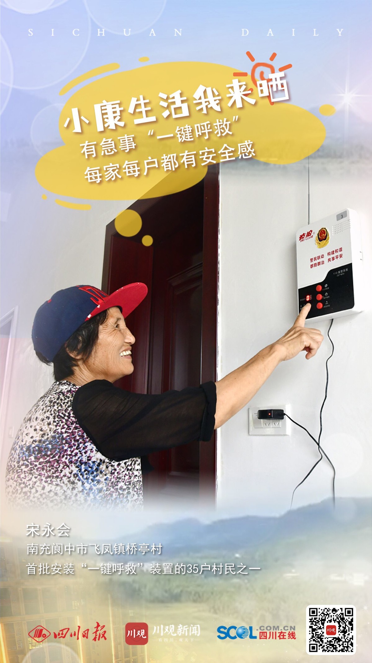 “你们家的那个安在哪里的,我看看呢。我也想安一个。”7月23日,南充阆中市飞凤镇桥亭村村民胡秀芬忙完手里的活,来到邻居杜明政家。她口中的“那个”,就是从今年3月开始,桥亭村率先试点的“一键呼救”智能系统。
