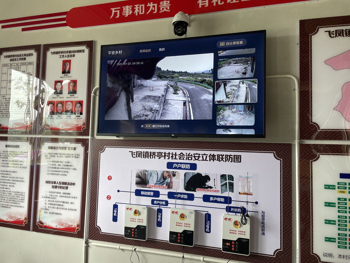 “一户按,十户响。一旦发生紧急情况,装置上的三个键随便按哪个,网格内的所有装置都会响。”飞凤镇党委书记何常清说,桥亭村作为乡村治安环境试点,首先细化了网格,由一村一格细化到10至15户为一个网格,整个村共16个网格。每个网格内,精准识别每户的治安状况,分成红、黄、绿三级。孤寡老人、精神疾病者、残障人士标记为红色,老人孩子在家的为黄色,有青壮年在家的则为绿色。诸如杜明政这样的红色、黄色家庭率先安装了“远程监控”和“一键呼救”设施,并且由村治安中心实时监控。