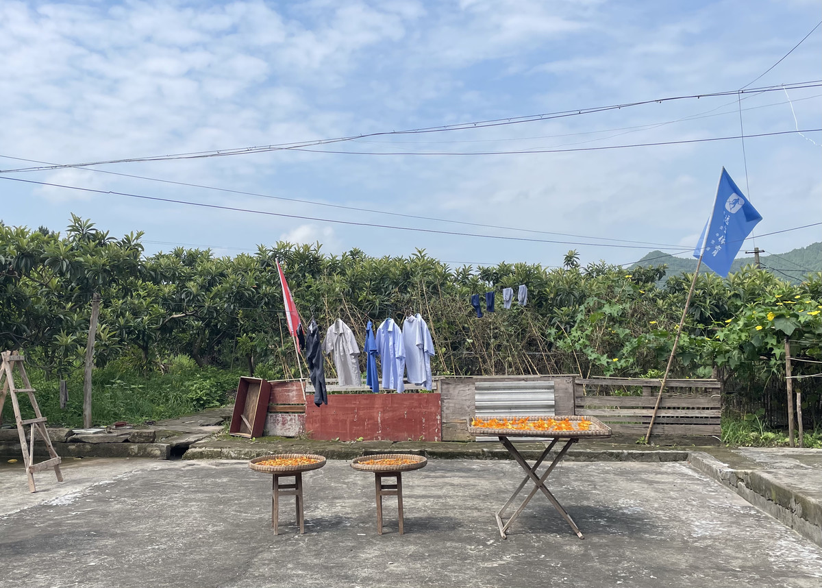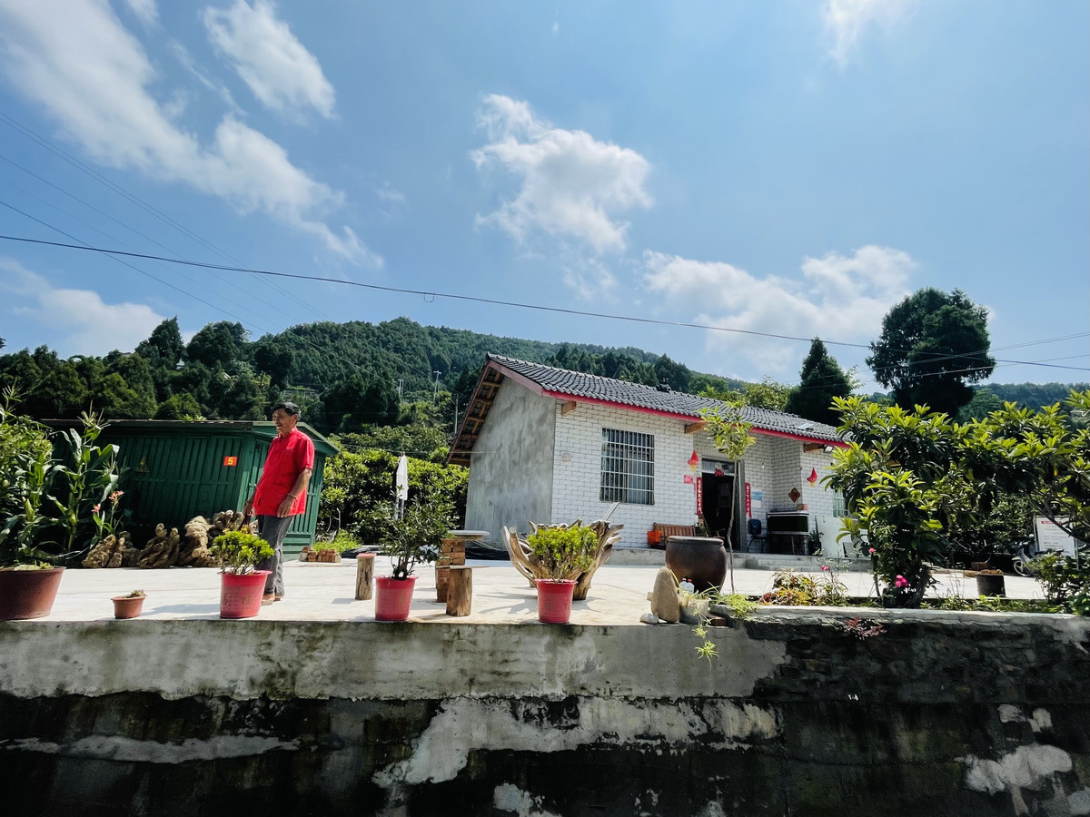 当天,盛夏,阳光灼热,杜明政的院子里晒着三簸箕黄花,院子栅栏外是他家四十多棵枇杷树。“现在种不动枇杷啦,交给我弟他们。我就安心照顾儿子。”杜明政今年70岁,十几年来一直在家照看患有精神疾病的儿子。他和其他35户村民是第一批免费安装“一键呼救”智能系统的家庭。