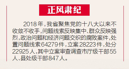 群众的感受是最直接的评判:2018年,全省党风廉政建设社会评价指数86.02,同比上升0.15,实现“七连升”。