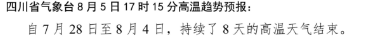 不过!随着8月5日下午,四川省气象台解除了高温蓝色预警。