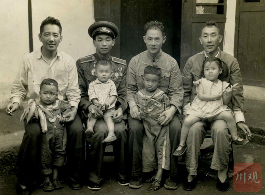 胡修道回乡探亲时与亲朋合影。金堂县档案馆提供
