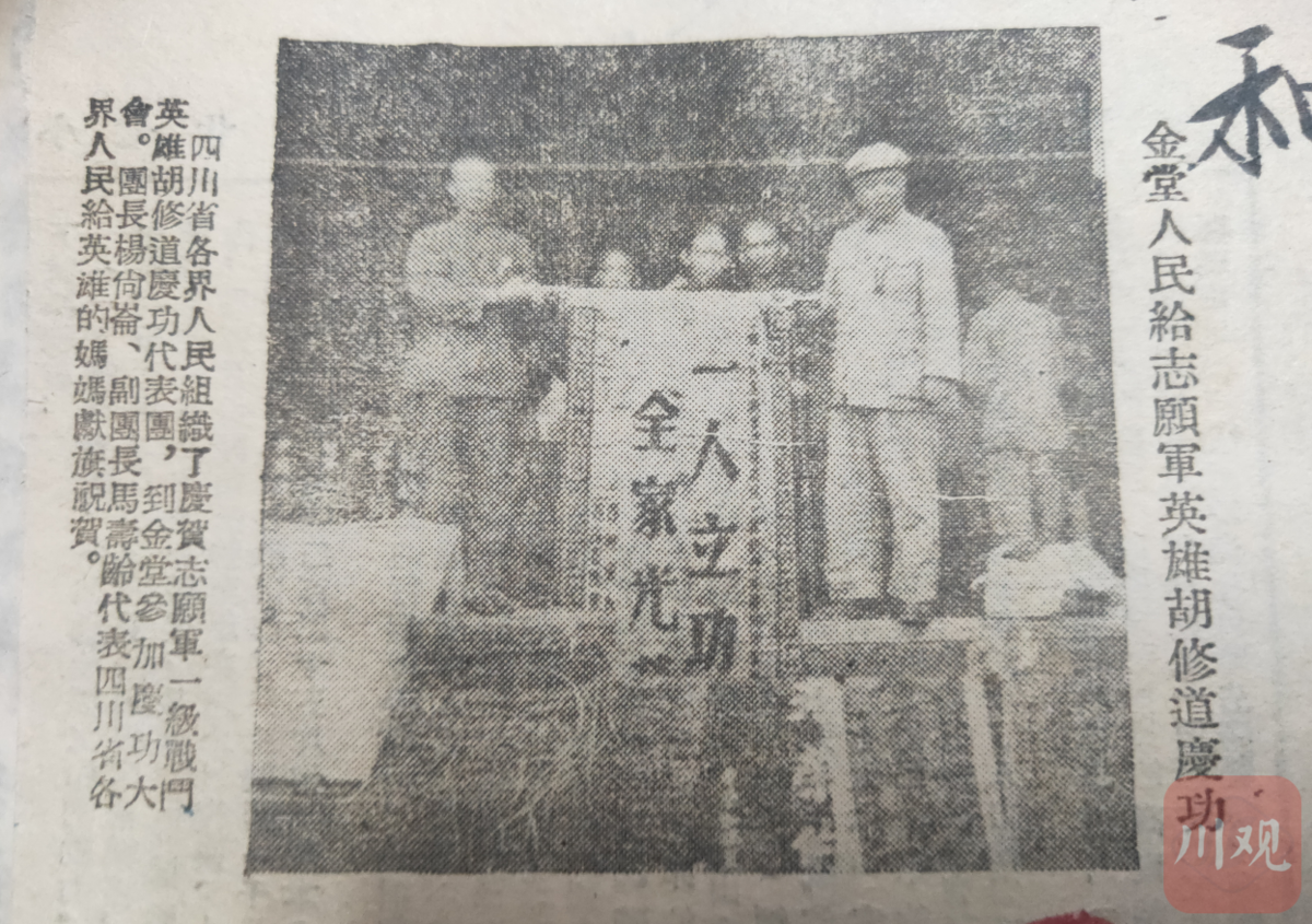 金堂人民给志愿军英雄胡修道庆功的报道。四川省档案馆提供