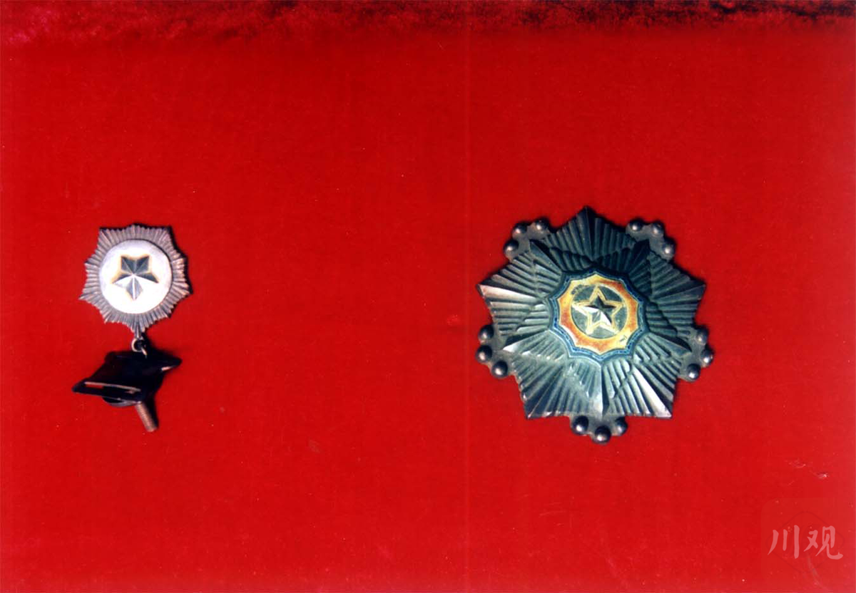 朝鲜民主主义人民共和国一级国旗勋章和金星奖章。中江县档案馆提供