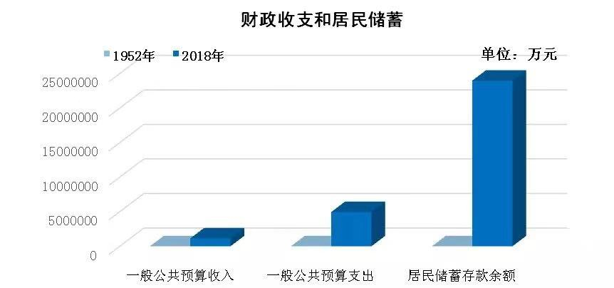 新中国成立初期,全市财政十分困难,人民生活一穷二白,伴随着新中国前进的铿锵脚步,财政收入、居民储蓄大幅增长,缺钱的日子已经过去。1952年,全市一般公共预算收入、一般公共预算支出分别为2208万元、582万元,2018年,全市一般公共预算收入、一般公共预算支出分别为113.9亿元、495.2亿元,分别是1952年的516倍、8507倍。1952年末,全市人民币存款余额123万元;2018年末,人民币存款余额为3292.66亿元,其中住户存款余额2397.37亿元。