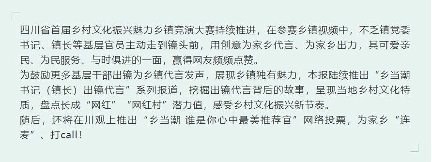 不论是书记代言还是群众方言代言,所传递的都是生活在这片土地上人们的“烟火气息”。张利波表示,借助四川省首届乡村文化振兴魅力乡镇竞演大赛,集中展现三汇的乡镇魅力,在乡村振兴之路中,这座千年古镇正用它深厚的文化底蕴和破浪前行的人文精神,期待着大家的到来。
