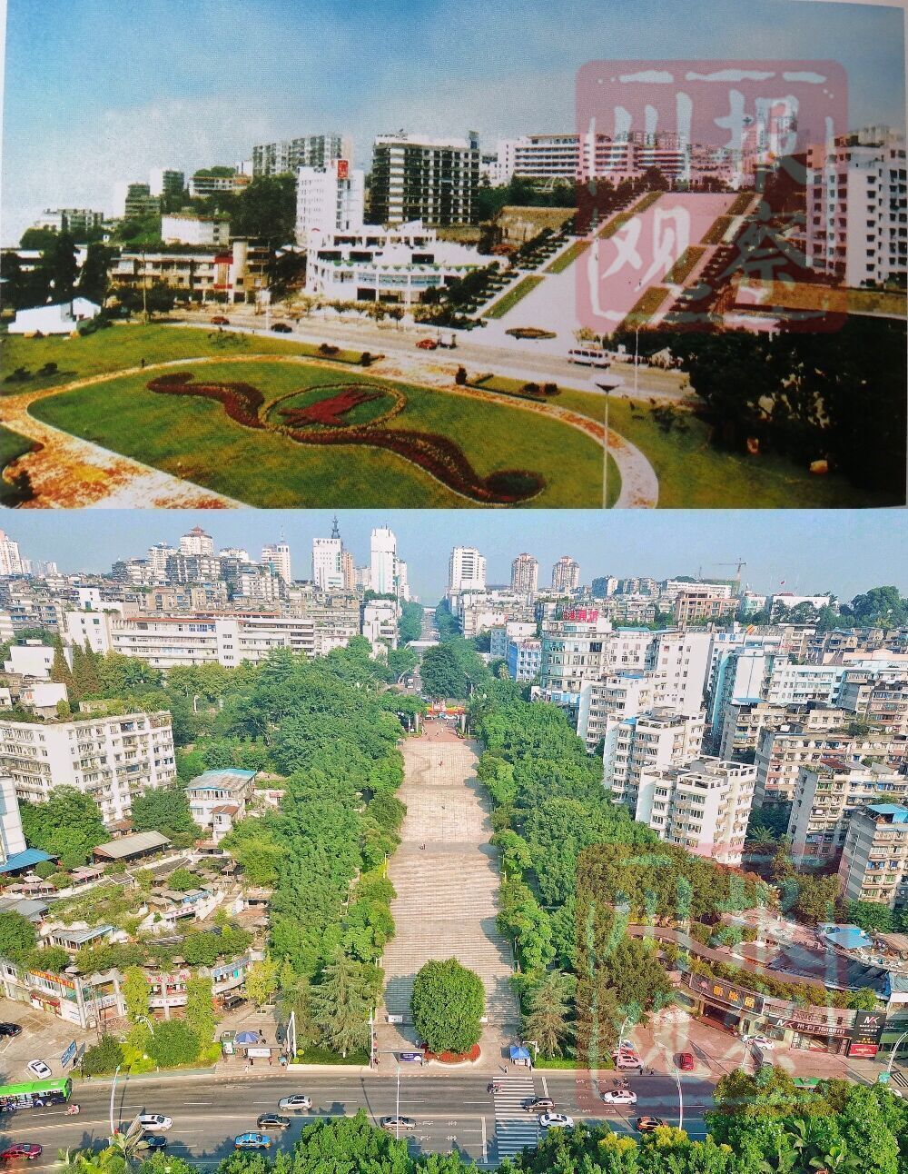 下图:2019年的大梯步广场,如今整个大梯步广场被绿色的大树包围,每天一大早就有市民前来,已成为了泸州部分市民日常打卡地。周梦颖摄。