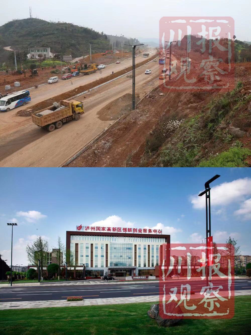 上图:2013年,泸州高新区道路施工建设画面。郭正峰摄。