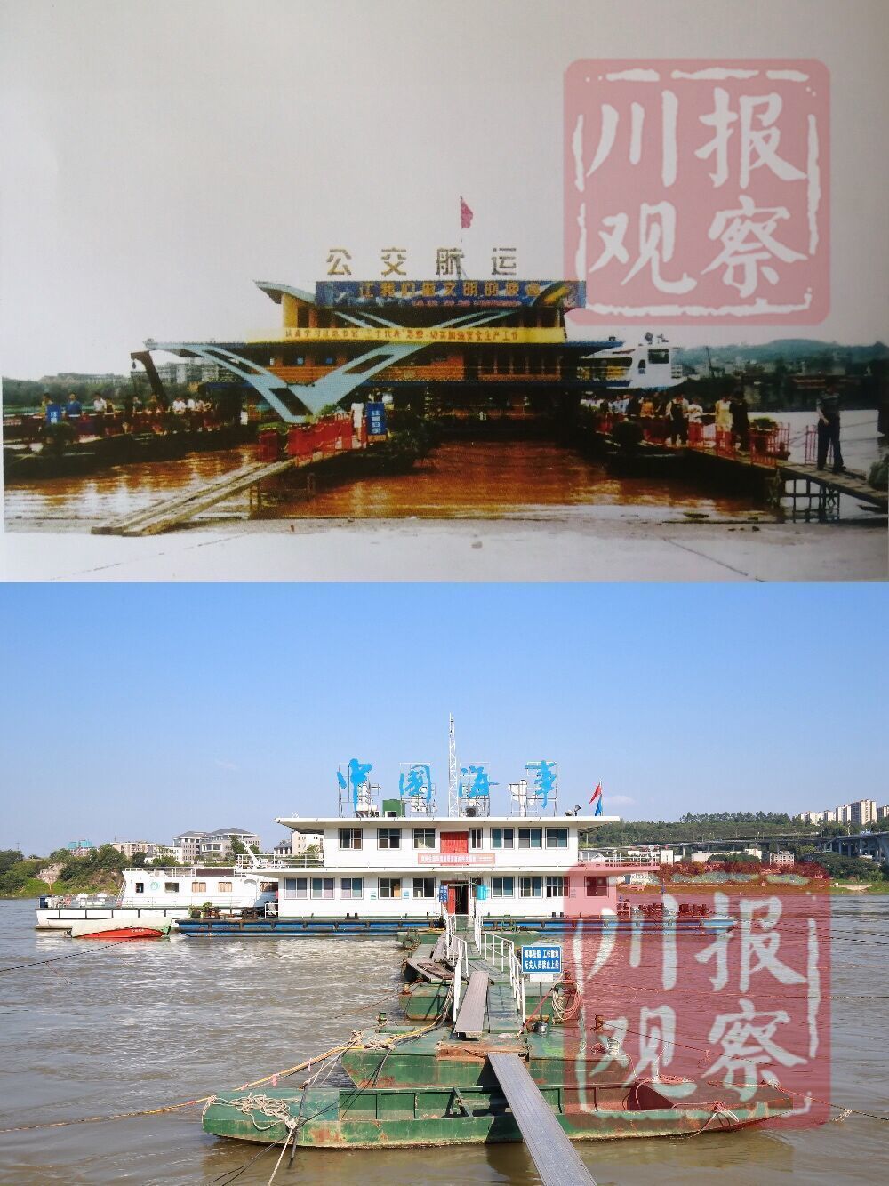 上图:改革开放前,泸州境内长江上没有桥,人们只能靠乘船过江。1982年10月1日,泸州长江大桥通车,泸州人民改渡为桥。周永叙摄。