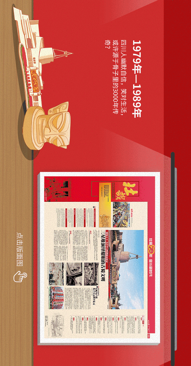 四川日报在这个具有纪念意义的特别日子,一共推出48个版面的报道。其中,特别推出了32个整版的特刊《壮哉新中国 奋进新四川》,做成了16个连版的特别形式,聚焦四川,感恩祖国,描绘了一幅70年来沧桑巨变的画卷。