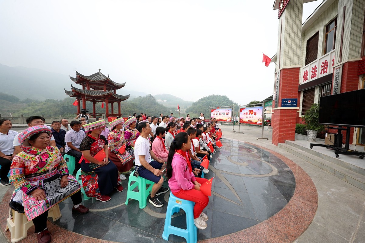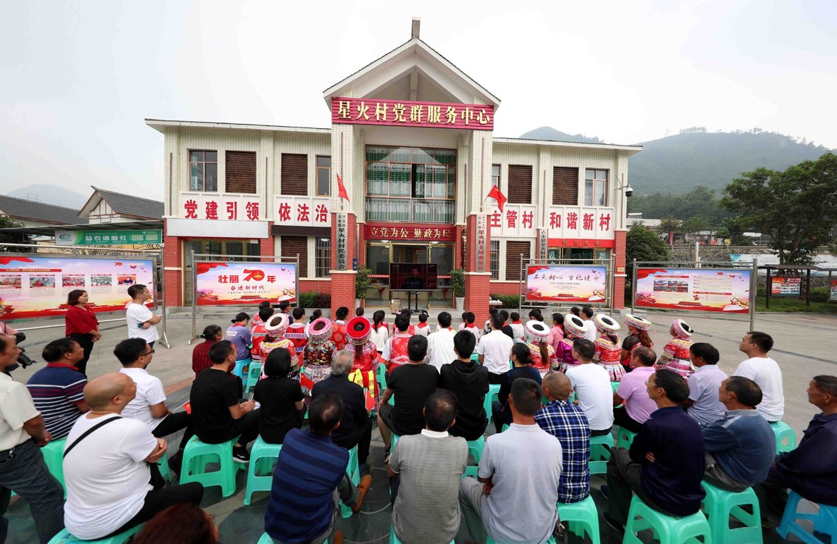 10月1日上午,庆祝中华人民共和国成立70周年大会、阅兵式、群众游行在北京天安门广场隆重举行。一大早,宜宾兴文县古宋镇星火村的党员群众就来到党群服务中心,集中收看直播盛况。