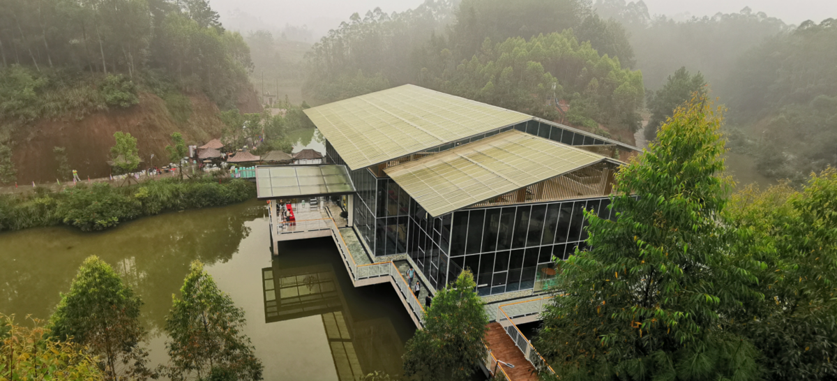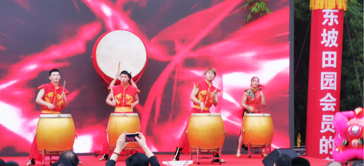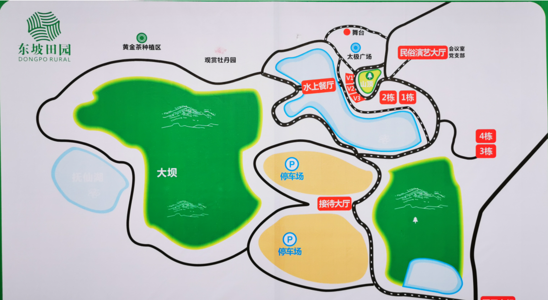 东坡田园位于四川眉山市仁寿县洪峰乡,据“东坡田园”董事长漆波介绍,东坡田园由生态农业、康养度假、社区新零售三大板块构成,目前,东坡田园第一期已初具规模,园区内道路和主要建筑,接待中心、水上餐厅,太极广场、演艺大厅、客房住宿、临崖别墅、洞藏酒窖等已竣工并投入使用。