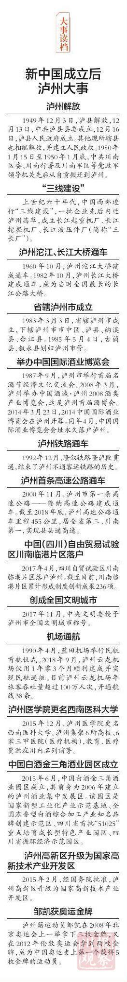 四川日报8月28日05版特别报道《新中国成立后泸州大事》,也是《见证·泸州70年》的十四组报道的由来