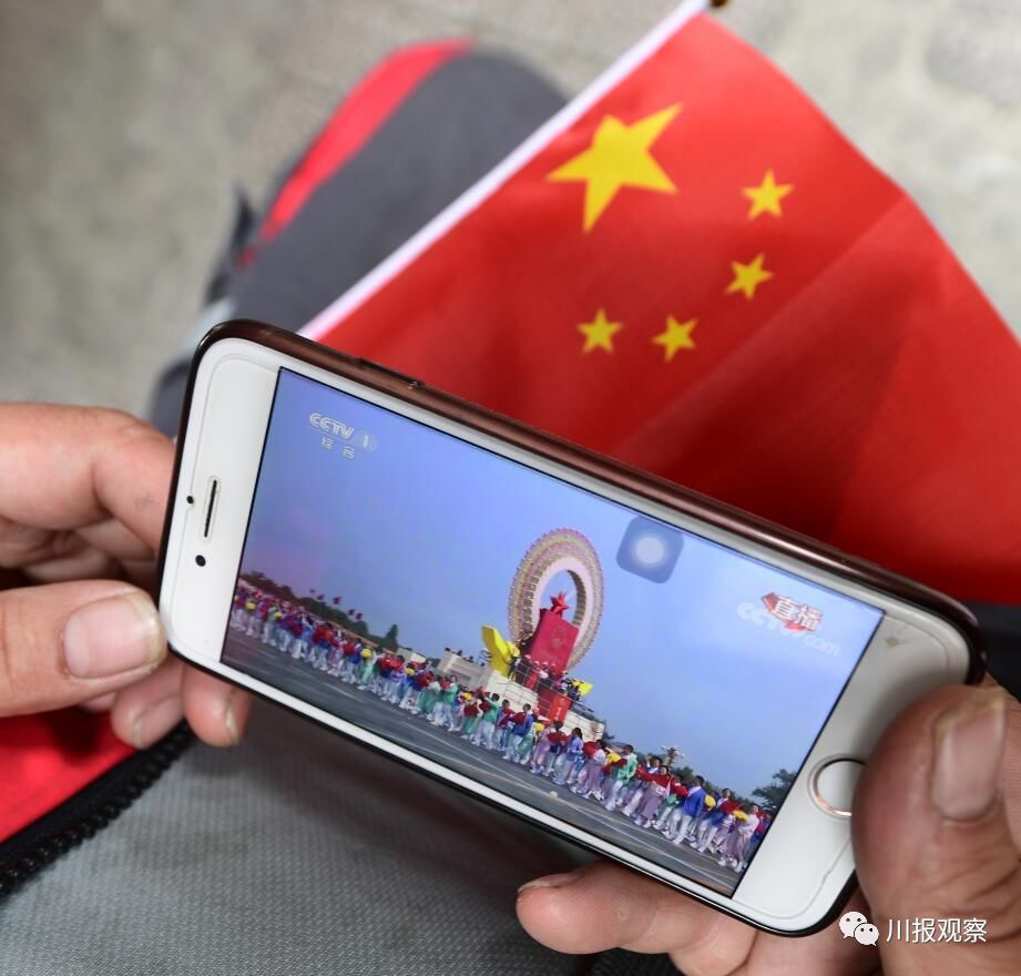 “太激动了,有这么强大的国家,我们老百姓日子才能越过越红火!”战旗村民杨奎不仅自己一早赶来收看庆祝大会,还带来了10多名同事朋友,“大家聚在一起,共同感受祖国的繁荣昌盛。”战旗村手艺传承人赖淑芳也和家人一起来到广场,“去年,总书记花钱买了我做的布鞋,这是我最开心的事情。有这么好的党,这么好的国家,给我们老百姓安安稳稳的生活,我们就会越来越有文化自信,老手艺也一定会越来越受欢迎。”