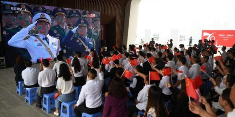 10月1日,中华人民共和国成立70周年庆典活动在祖国首都北京举行。全省各地干部群众通过各种方式收看大会和阅兵式、群众游行活动盛况,共同见证这一伟大时刻,为祖国的繁荣强大点赞。