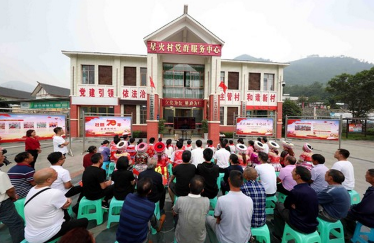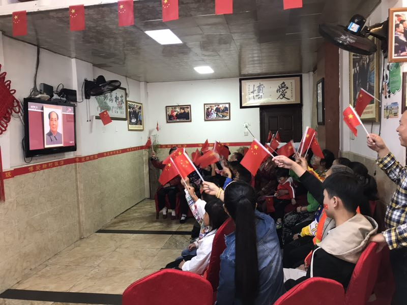 10月1日上午,庆祝中华人民共和国成立70周年大会、阅兵式、群众游行在北京天安门广场隆重举行。一大早,宜宾兴文县古宋镇星火村的党员群众就来到党群服务中心,集中收看直播盛况。