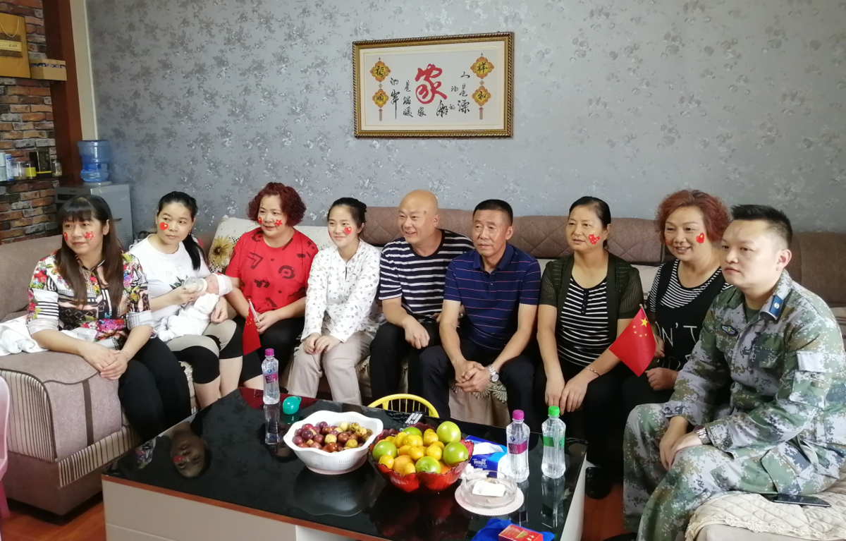10月1日上午,安岳县人民武装部文职人员王中鲁在北京参加国庆70周年阅兵,走在文职人员方队,接受人民的检阅。而在他安岳县的家里,亲戚朋友齐聚一堂,观看中华人民共和国成立70周年庆典。