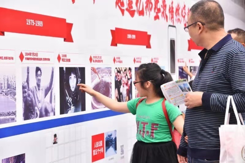 今天的人民公园热闹非凡,处处彰显着喜庆气氛。不少市民游客纷纷来到“我与祖国共成长”时光专列展板前,与老照片合影留念,还有许多家长们在为孩子讲述一张张老照片背后的故事,为祖国今日的繁荣发展的备感自豪。