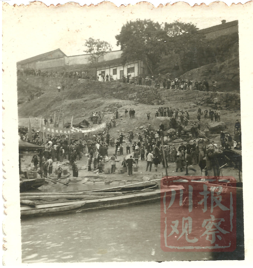 1964年12月底,上海工程机械厂液压元件车间65名职工调来通机厂。在码头上岸时,受到通机厂上千职工和家属夹道欢迎(“1965茜草三线记忆”临展博物馆供图)