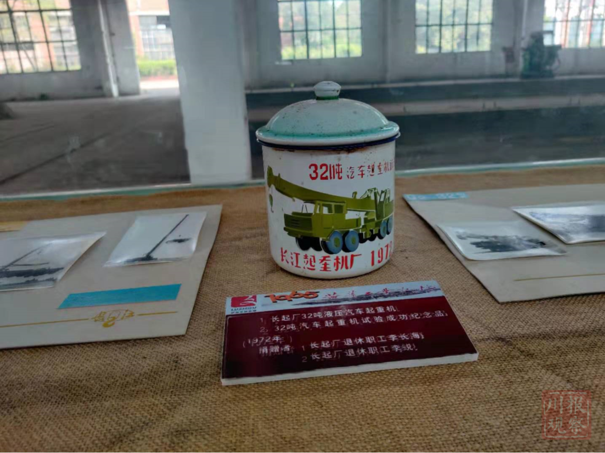 “这里是以前的车间;这里是以前的生活区;这是大茶缸子、随身听……”66岁的唐建国是原长江起重机厂技术中心工程师,现在他又多了一个身份是“1965茜草三线记忆”临展博物馆的管理员。