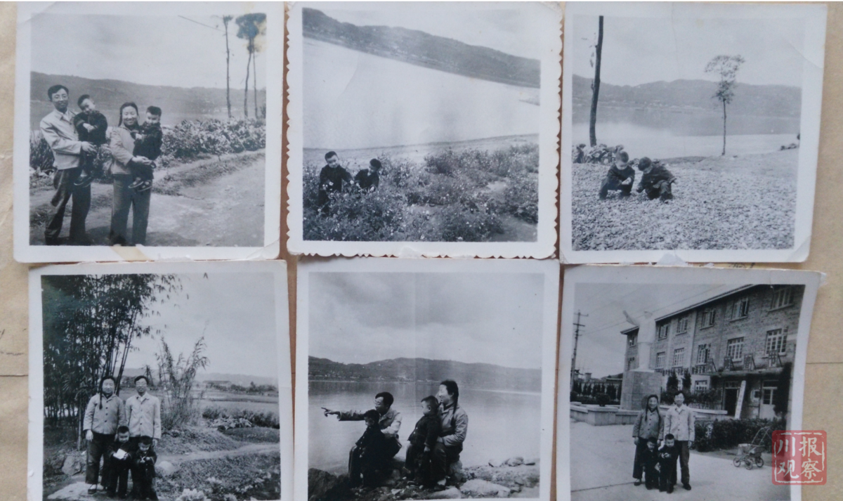 1968年,在原长挖厂码头至铸钢一带江边及办公楼前拍摄的家庭组照(“1965茜草三线记忆”临展博物馆供图)