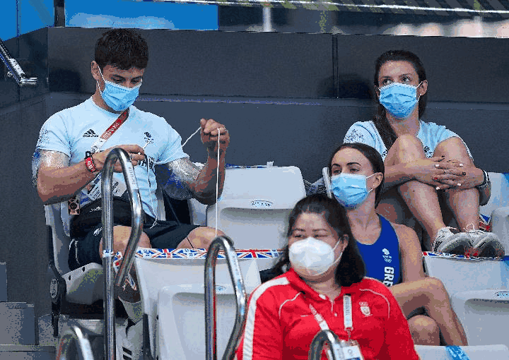 为英国获得男子双人10米台冠军的名将戴利喜欢“织毛衣”——无论是在房间里还是观看队友比赛时都不放下。