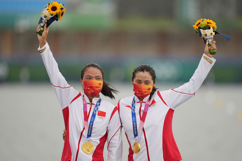 8月7日,徐诗晓(左)/孙梦雅在颁奖仪式上。新华社记者 费茂华 摄