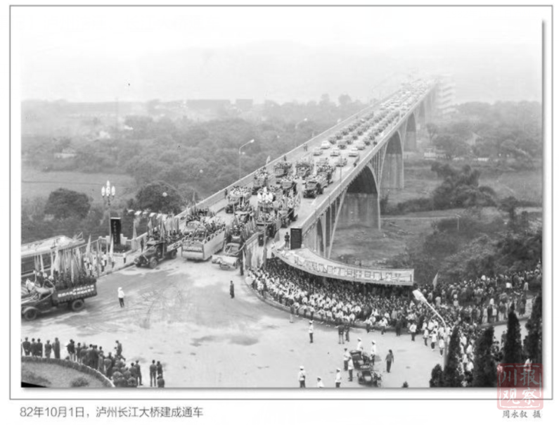 “没办法?那就再想办法,不管怎样,也要把桥架起来!”徐明国边说,边指着一张在1982年拍摄的泸州长江公路大桥通车典礼合影感叹,当时所有的泸州人都奢望能有一座桥来跨越长江天堑,政府也希望这座桥能够架起泸州经济发展的生命线,帮助泸州成为省辖市。