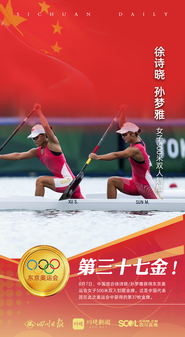 【第37金!徐诗晓/孙梦雅夺皮划艇女子双人划艇500米冠军】