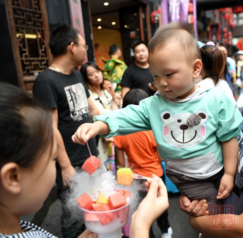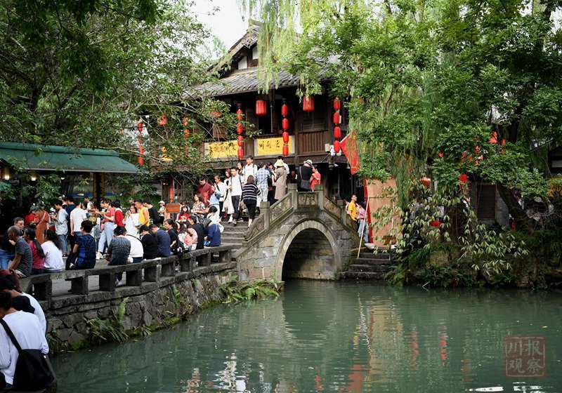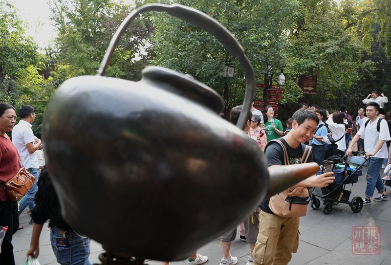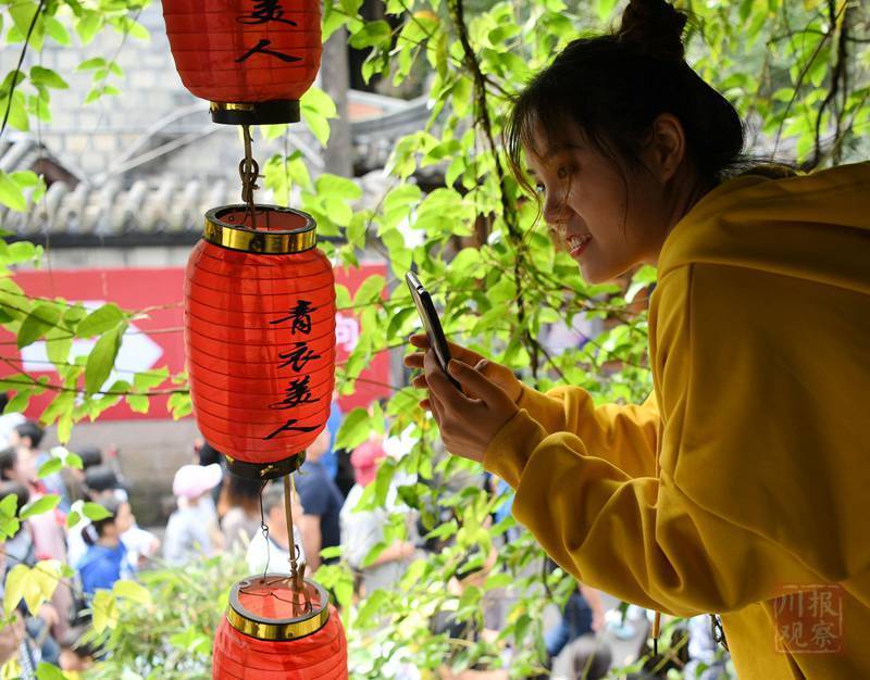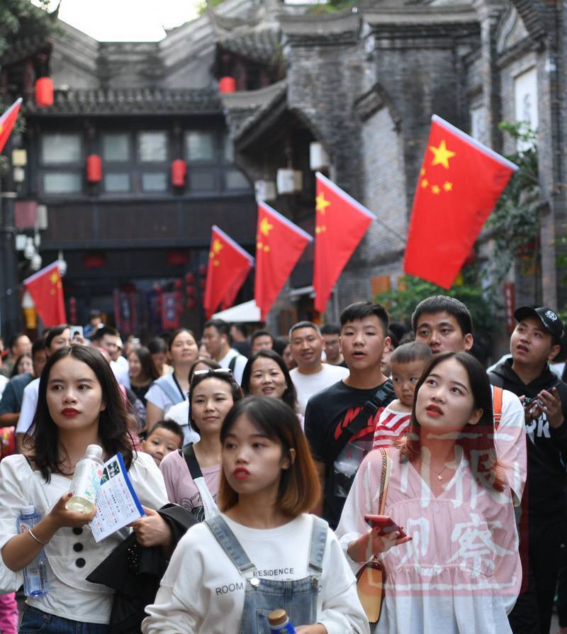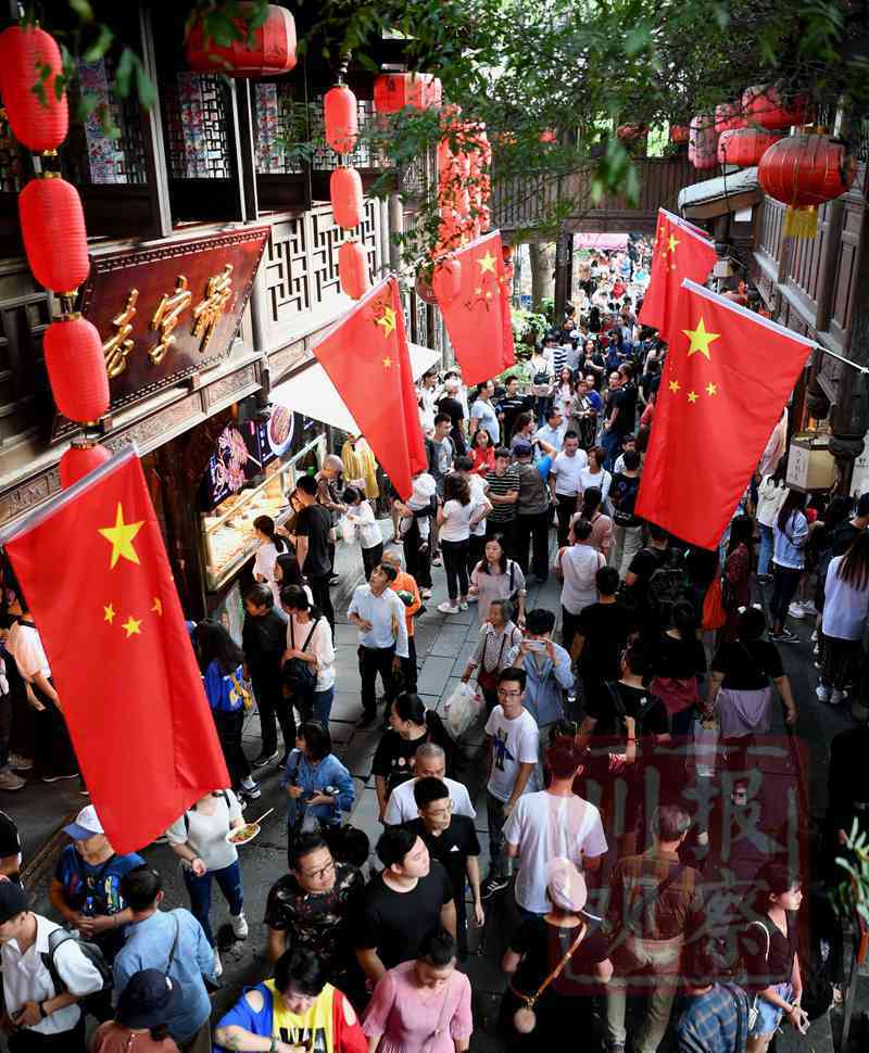 10月5日,国庆长假第五天,成都市锦里吸引世界各地的游客,这里的美食、好玩的、好看的让游客热情不减,欢快地度过国庆假日。