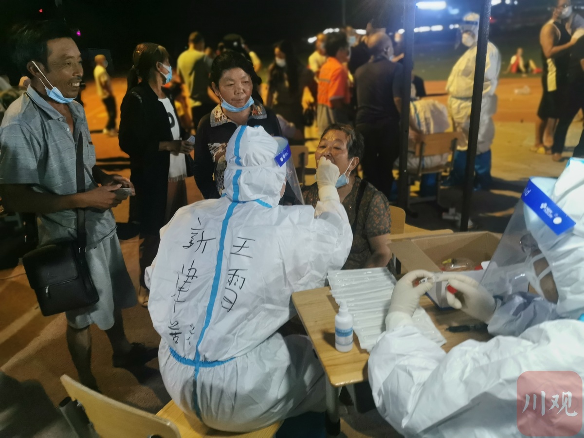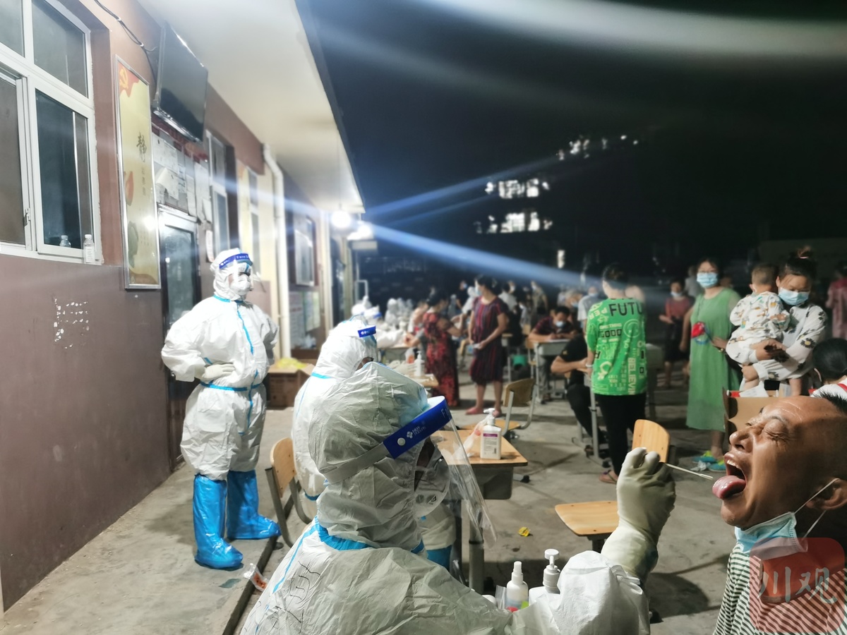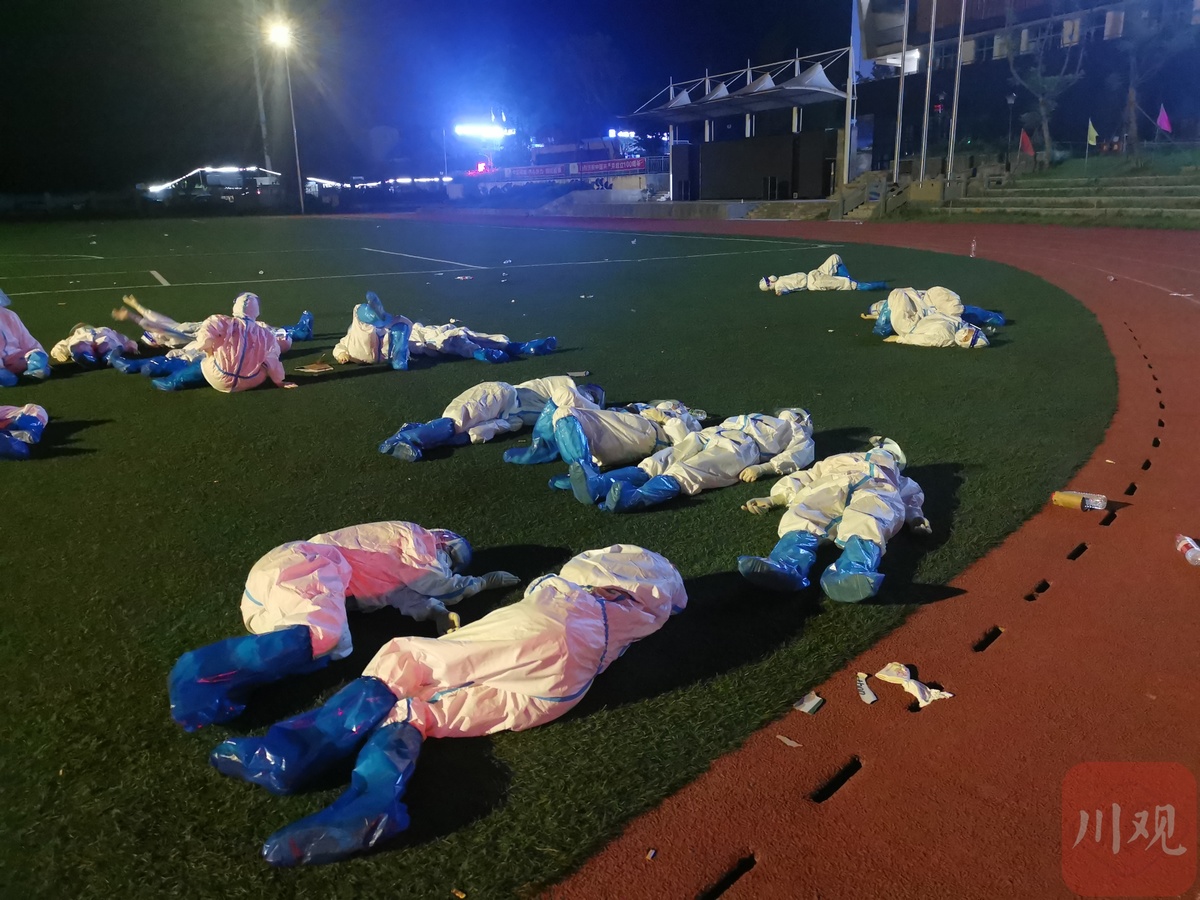 7月28日,成都市疫情防控工作指挥部决定对东部新区天府机场、三岔湖街道迅速启动核酸检测。按照要求,新津区各个医疗单位,迅速组织精兵强将,第一时间赶赴东部新区。晚上10:00发出召集,11:00人员到位,夏日的炎热还未褪去,支援防疫的热情依然高昂,历经10个小时的奋战,最终完成支援任务,高强度的精神压力之后,等待交接的医务人员带着疲惫的身子累到在岗位上、草地上、路边上……