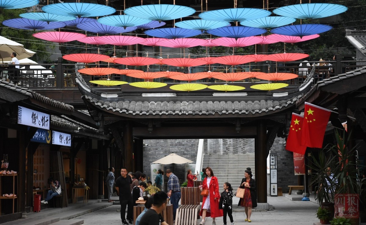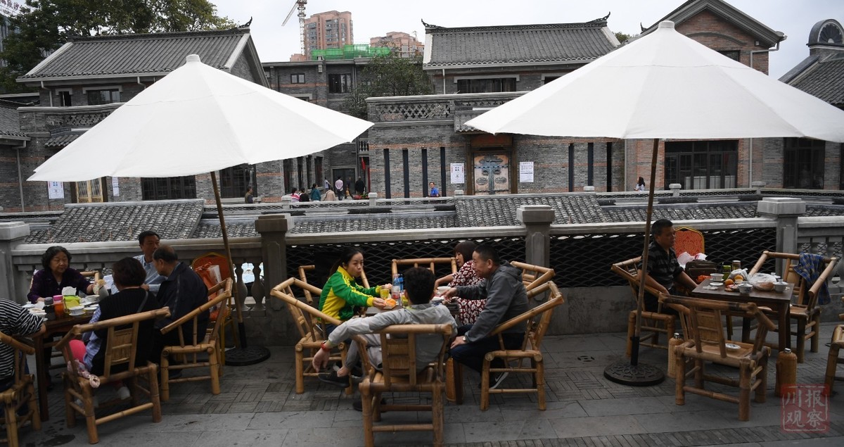 10月6日国庆大假第六天,成都市东门新建规划的市井文化体验街区吸引市民前来品赏美食、休闲游玩度过快乐节日。