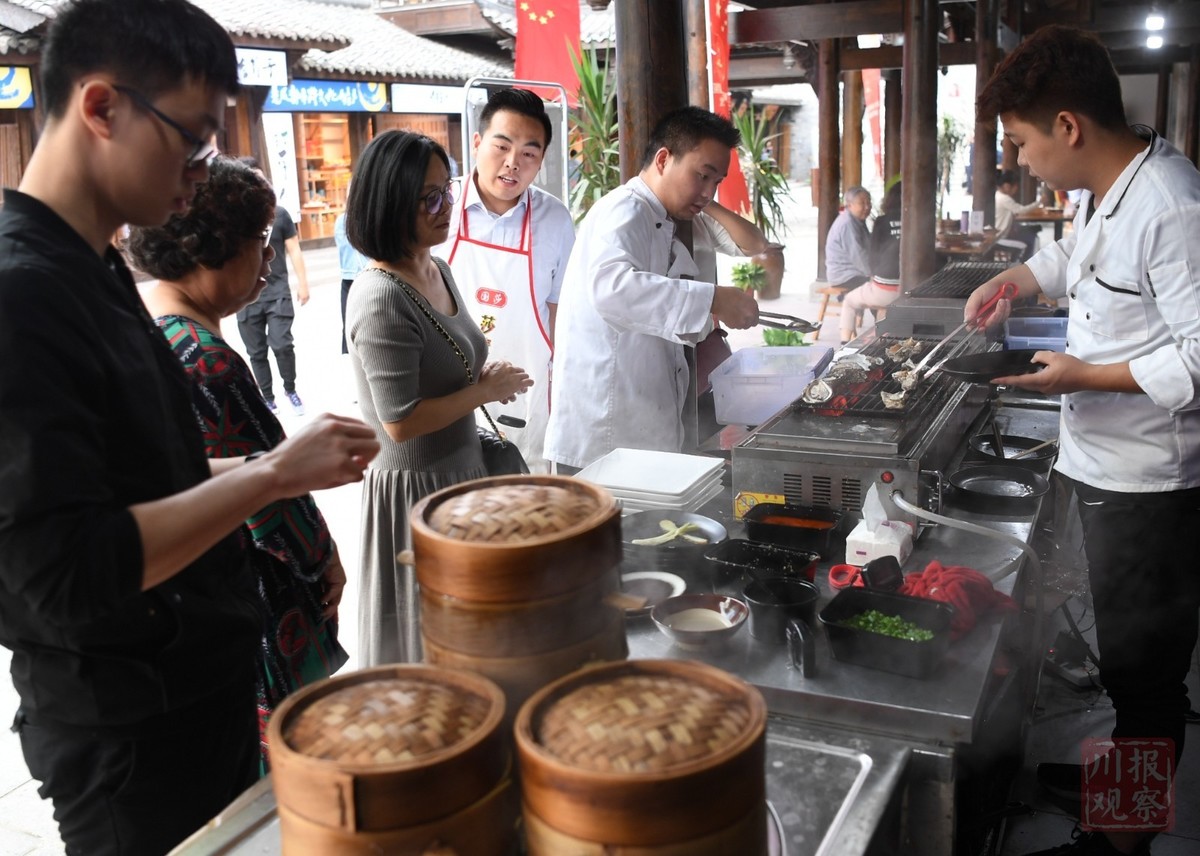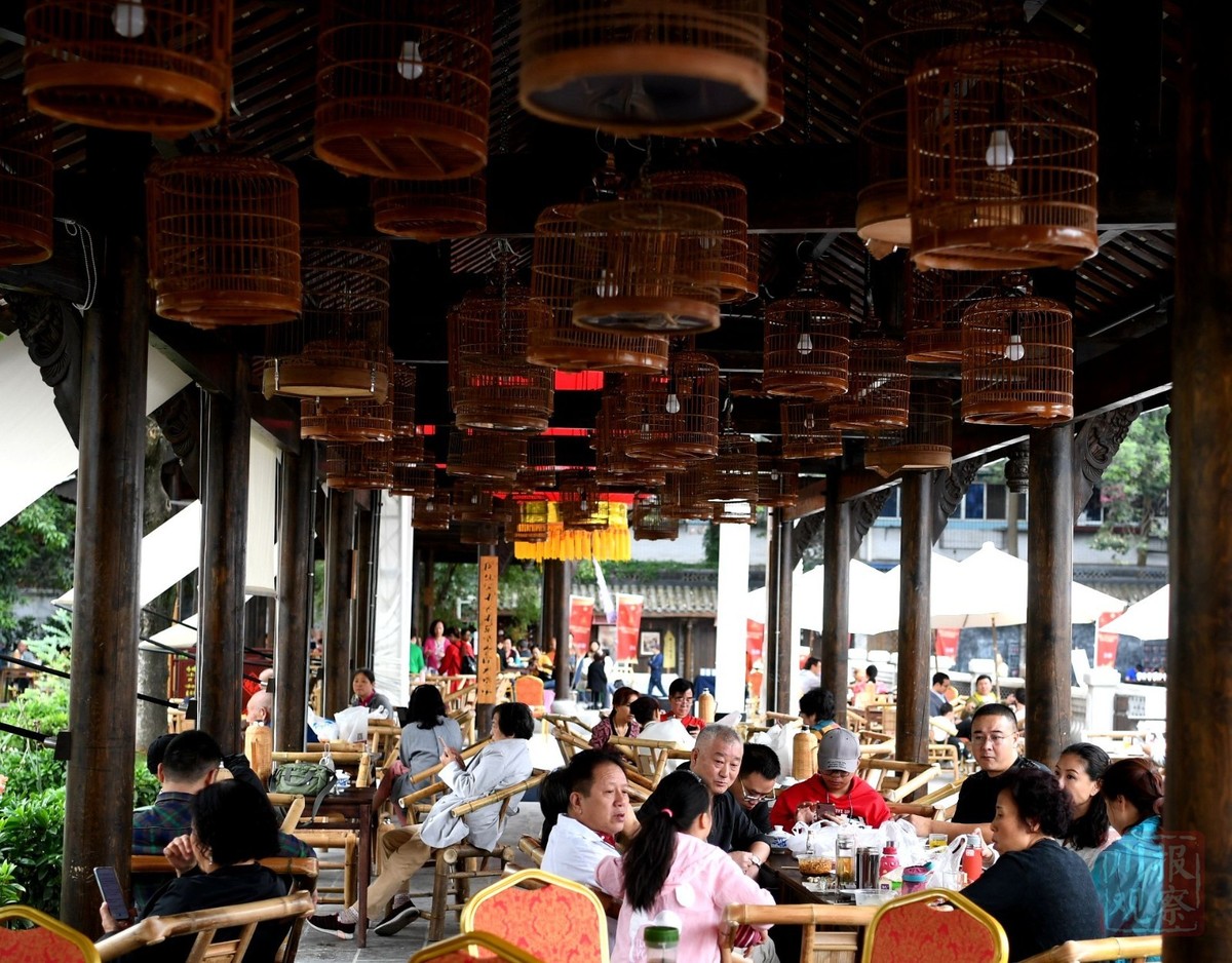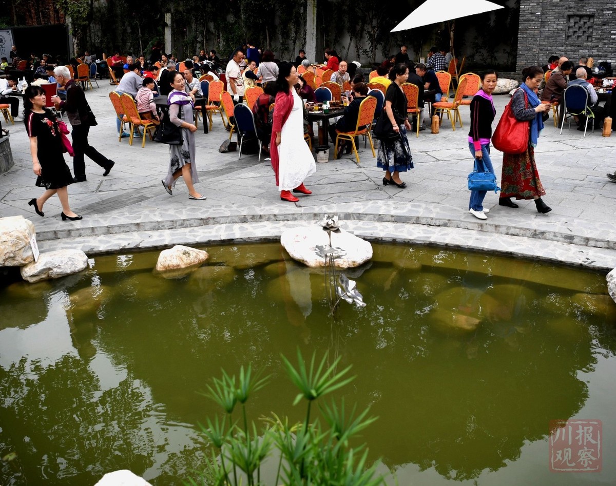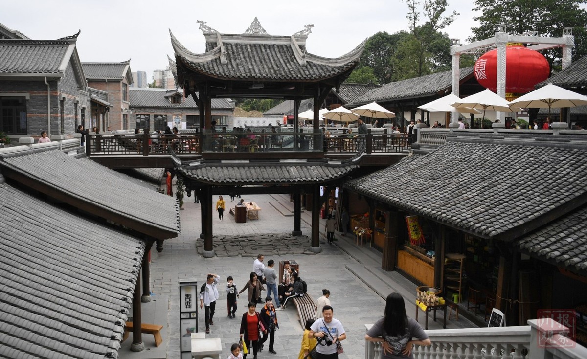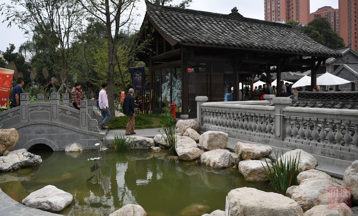 “东门市井”占地40余亩,正是以李劫人笔下的老成都市井生活场景为中心,通过公馆建筑群、下沉集市广场、铺板小馆、老式茶铺、凉亭水榭等,生动再现了老成都热闹的市井生活。
